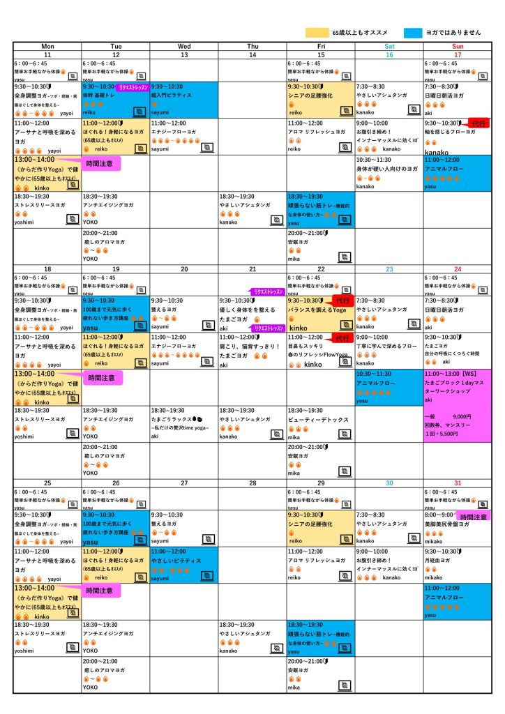 11:00~12:00 肩こり、猫背すっきり!たまごヨガ aki